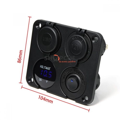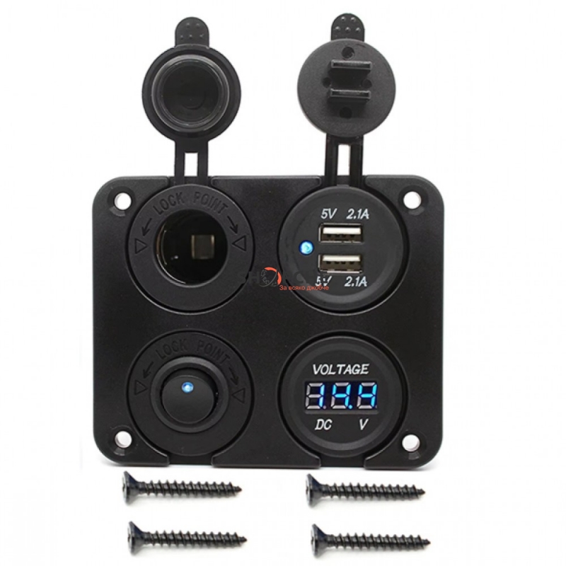 панел за вграждане, волтметър за кола, USB зарядно за автомобил, панел с бутони за кола, 12V изход за запалка, заряден панел за кемпер, морски панел за управление.