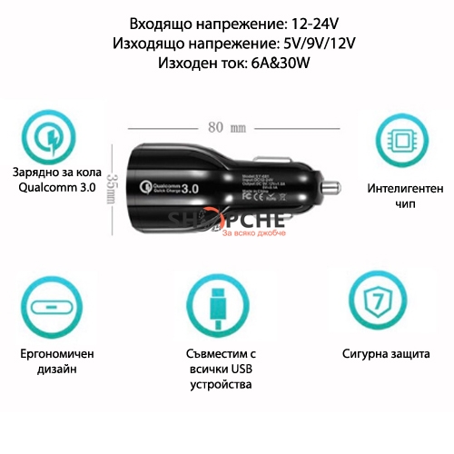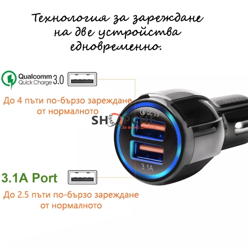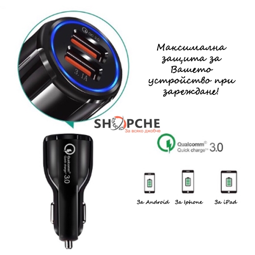 2бр. USB – 3.1А+QC-3.0