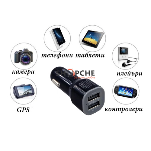 Зарядното устройство е специално проектирано за Вашите мобилни телефони и други електронни продукти с USB порт, доста практично и функционално. Оборудван с двоен USB интерфейс и предназначено за устройства, които се нуждаят от захранване, нашето зарядно устройство може да зарежда две устройства безопасно и бързо едновременно.