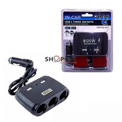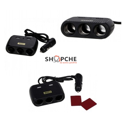 W разклонител за кола с 3 гнезда за запалка и USB вход