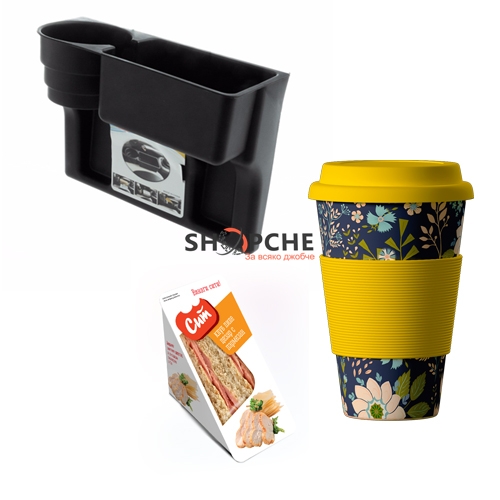 Кръгло отделение пригодено за чаша и правоъгълно отделение за Вашия телефон или каквото прецените.