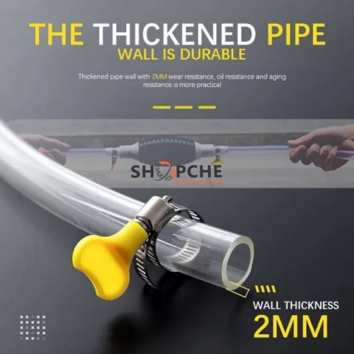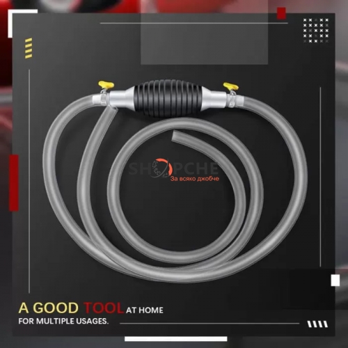 2 гъвкави и издръжливи PVC прозрачни маркучи осигуряват лесен достъп до различни съдове с горива или течности.