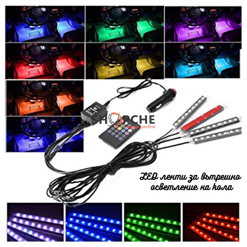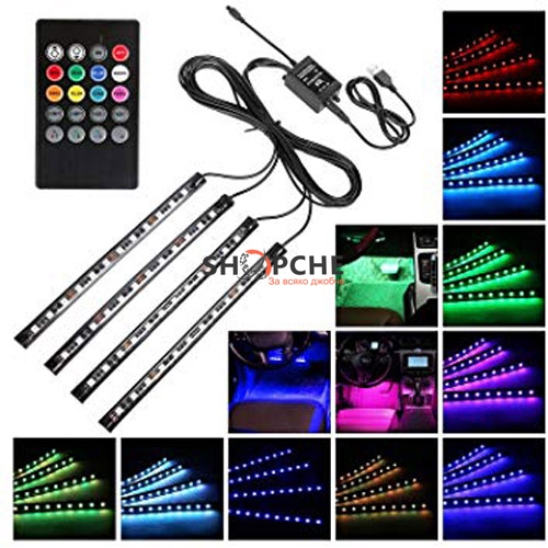 4 броя LED ленти за вътрешно осветление на кола