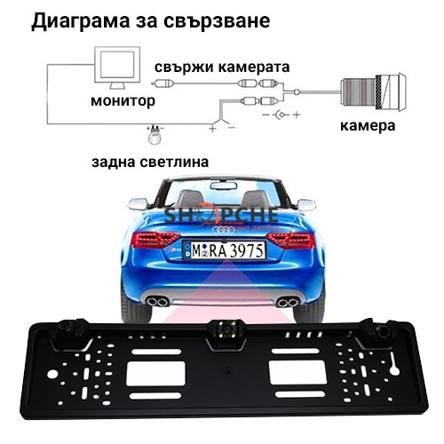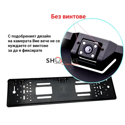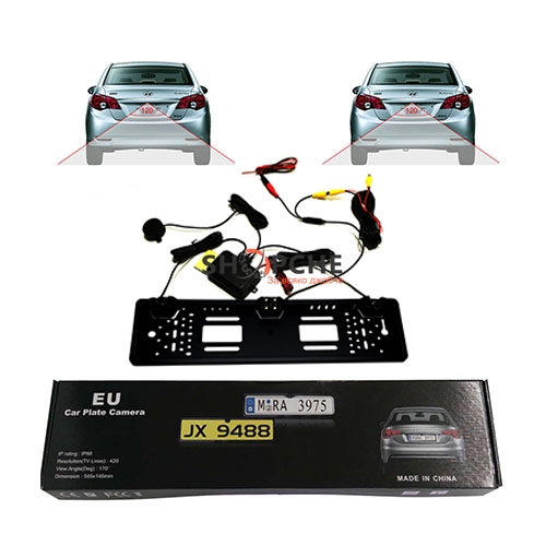 EU Car plate включва вградена камерата, която е монтирана в пластмасовата рамка, която държи автомобилния номер.