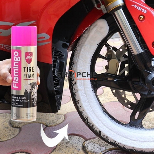 спрея FLAMINGO за почистване на джанти премахва натупаните прах, грес и