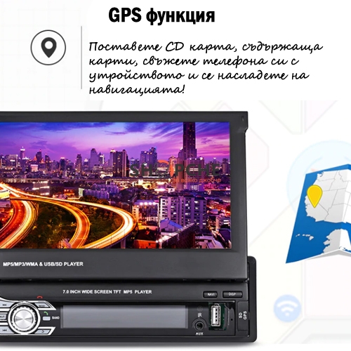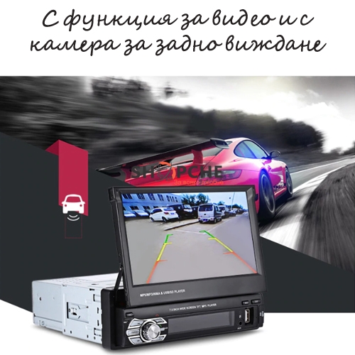 Снабден с дистанционно управление- изключване с функция за автоматично запаметяване в радио памет, SD CARD или USB режим.