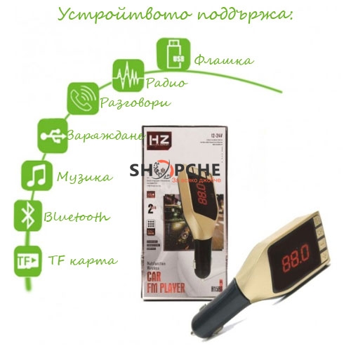Универсален Wireless модулатор, който възпроизвежда любимите Ви песни от телефон, таблет или друго устройство.