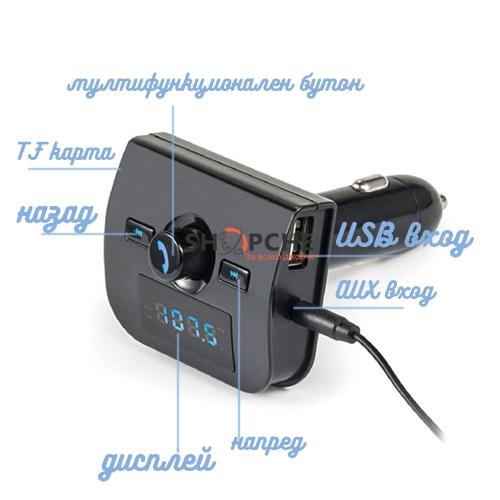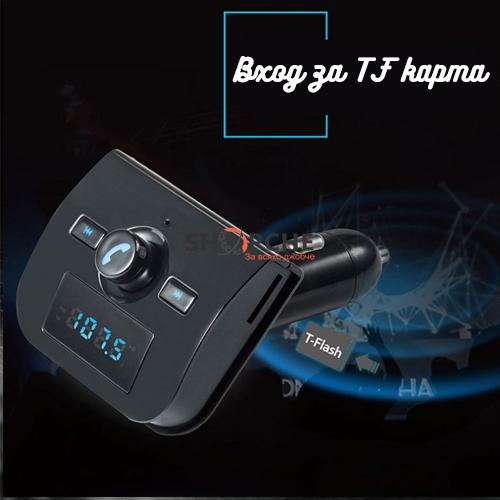 Трансмитер за кола с вграден микрофон,Bluetooth устройство с лесен достъп само с няколко бутона,което Ви позволява да приемате обаждания и да шофирате безопасно.