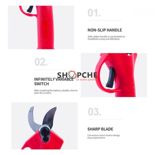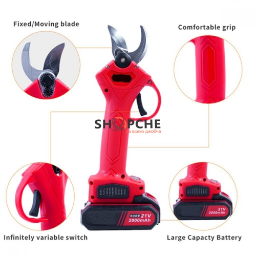 👉 Присъедини се към Viber общносттаАкумулаторната ножица позволява рязане с електрическа мощност. С тази ножица режете клони с дебелина до 30мм с лекота.