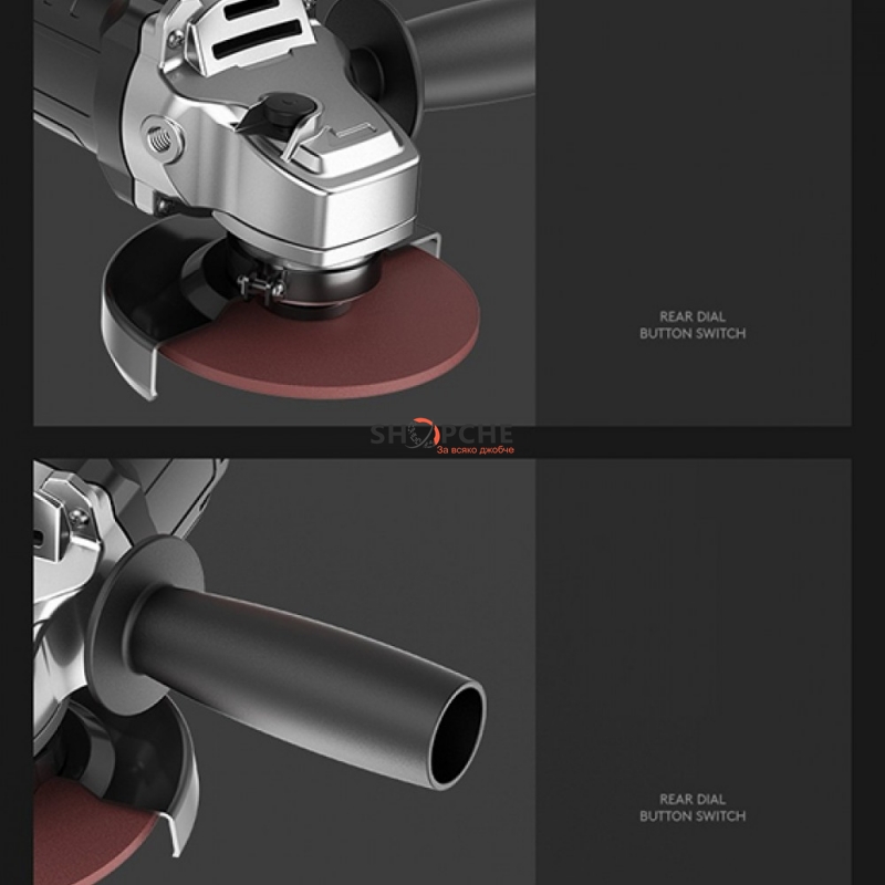 Акумулаторният ъглошлайф се управлява лесно с помощта на превключвател и предлага възможност за регулиране на оборотите. Това ви позволява да променяте скоростта на рязане или шлифоване в зависимост от изискванията на проекта.