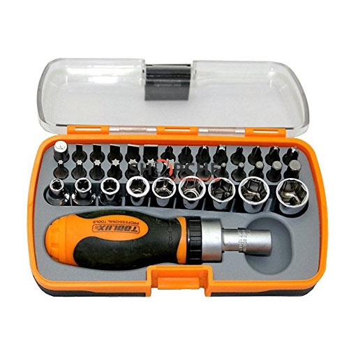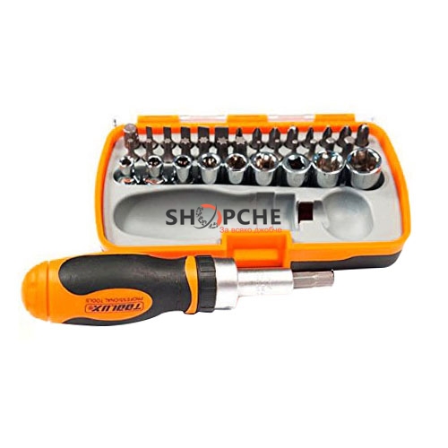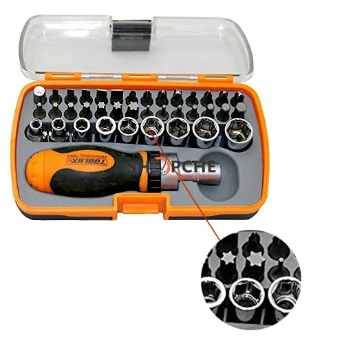 37 приставки: 28 приставки за отвертка: 3mm, 4mm, 5mm, 6mm, 7mm Phillips #0, #1, #2, #3 T10,T15,T20, T25,T27, T30, T40, 1.5mm, 2mm, 2.5mm, 3mm, 4mm, 5mm, 6mm