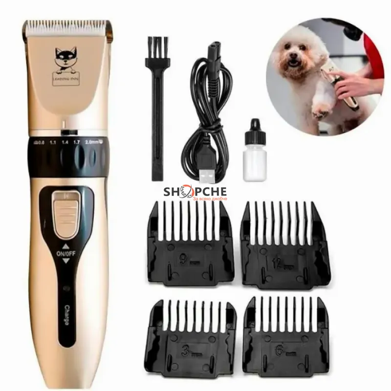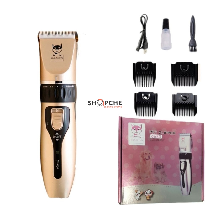 Pet Clipper 6680 е безжична и тиха машинка за подстригване на кучета и котки с неръждаеми остриета и мощен нискошумен мотор. Регулируемата дължина 0,8–2 мм и гребените 3/6/9/12 мм позволяват прецизно оформяне у дома без излишен стрес. Батерия 1200 mAh (до ~45 мин работа), USB зареждане за около 3 часа. Метален корпус, удобен размер 20×4 см. Не е водоустойчива – използвайте върху суха козина.