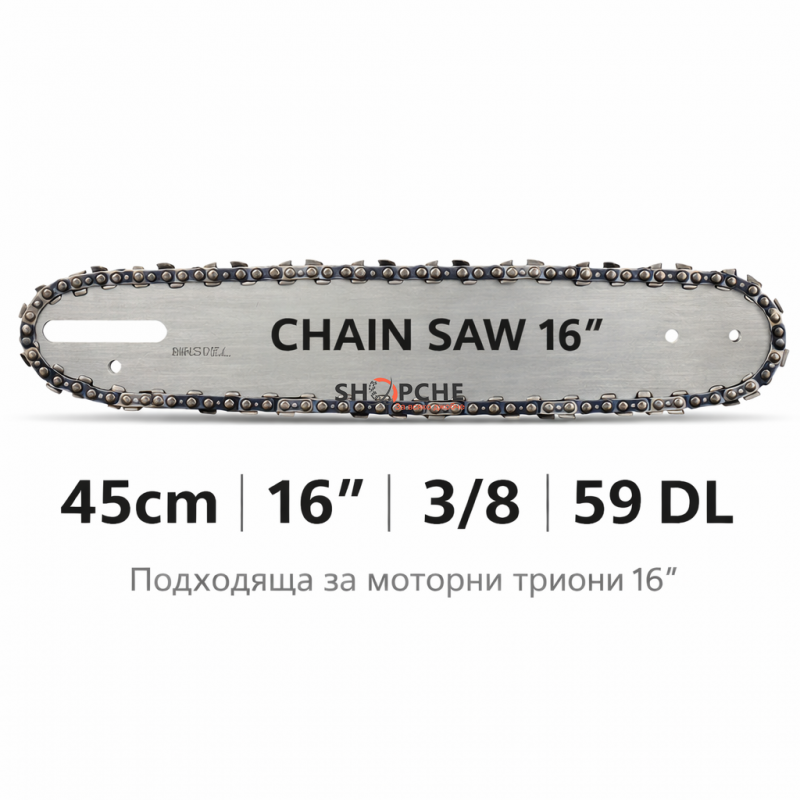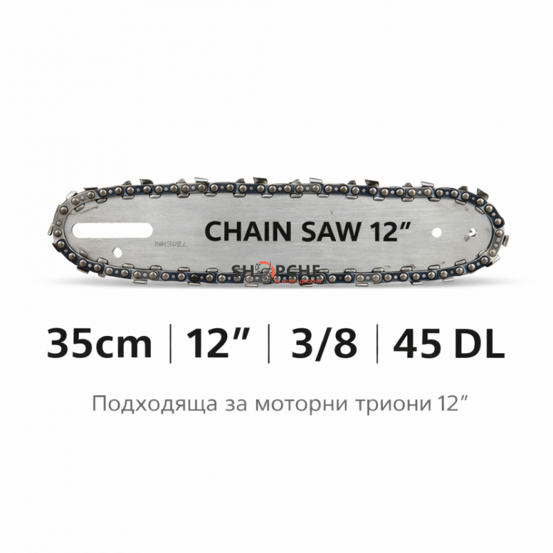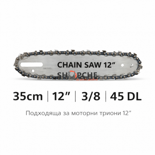 Предлага се в размери 12″ (35cm) и 16″ (45cm) с различни стъпки – 3/8 или .325.