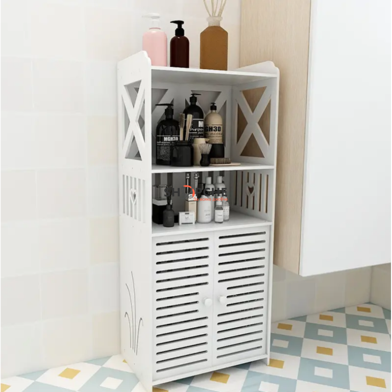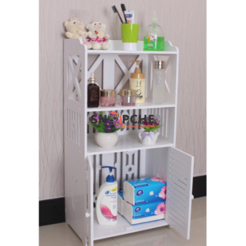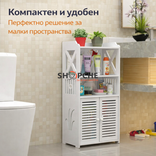 Със затворено шкафче и 3 удобни рафта, ще имате достатъчно място за козметика, кърпи, аксесоари или други ежедневни вещи.