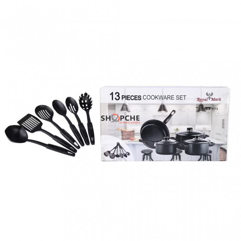 👉 Присъедини се към Viber общносттаОборудвайте кухнята си с практичен и стилен комплект съдове Royal Mark от 13 части, създаден за удобно и безопасно готвене всеки ден.