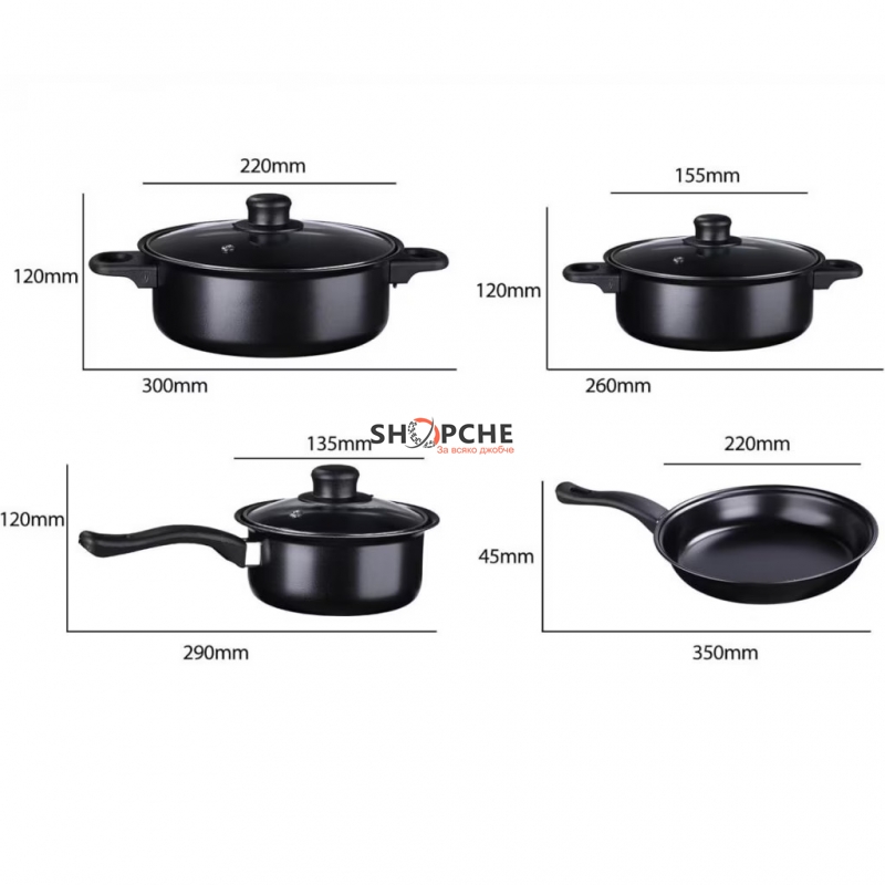Комплектът съчетава функционалност, устойчивост и модерен дизайн, като осигурява равномерно разпределение на топлината и отлични резултати при всяко приготвяне на храна.