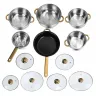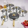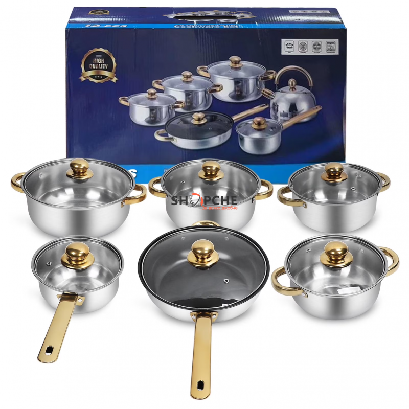 👉 Присъедини се към Viber общносттаСъздайте удобство и прецизност във вашата кухня с комплект тенджери и тиган от 12 части, изработен от висококачествена неръждаема стомана и подсилен с 9-слойно капсулно дъно за равномерно разпределение на топлината.