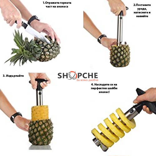 С резачката за ананас шайбите се получават само за няколко секунди и плода е готов за консумация!