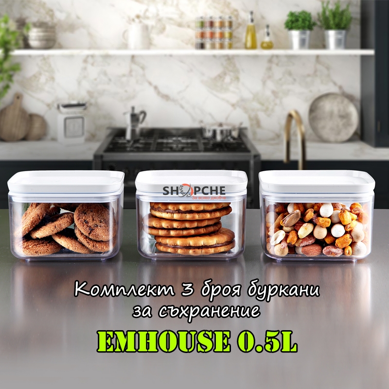 Подредете кухненският си шкаф със сухи продукти бързо и практично с този комплект от 3 буркана за съхранение.