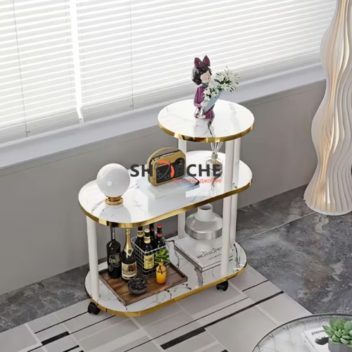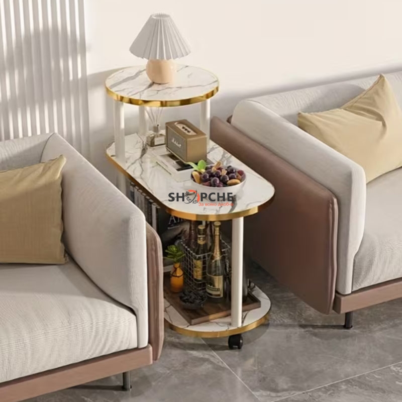 Практична, компактна и елегантна – тази триетажна масичка с колелца е идеалното решение за всеки дом, където пространството е ценно, а удобството е на първо място. Подходяща е както за хол и спалня, така и като кафе масичка, нощно шкафче или помощна маса до дивана.