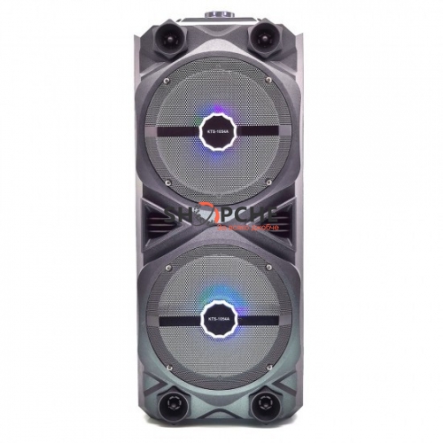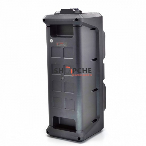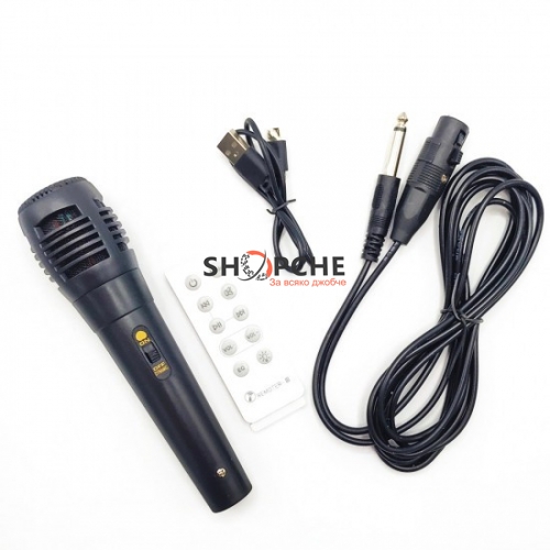 Двойната караоке тонколона е с големи размери, красив дизайн в черен цвят. Направена от материал, който е здрав и устойчив на външни условия. Към не получавате жичен микрофон и дистанционно управление.