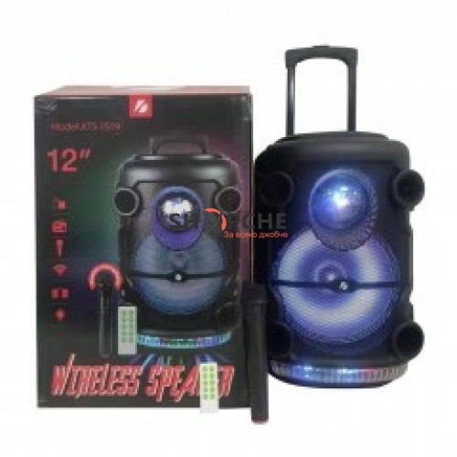 👉 Присъедини се към Viber общносттаТози нов модел система за караоке, ще зарадва всички почитатели на музикалните изпълнения и организирането на празнични събития с възможности за караоке. Системата е един много добър начин да осигурите часове на забавление и празнично настроение с приятели, семейство, музикални изяви. Уредбата има множество различни светлинни ефекти, които я правят подходяща за празнуване на рождени дни, Коледа и Нова година. Микрофонът в комплекта е безжичен и осигурява удобство и широк обхват на действие с възможност за включване на музика от SD карта, радио, bluetooth или USB флашка. Системата се захранва от вградената акумулаторна батерия Rechargeable Li battery 1800mAh много подходяща за организиране на събития на открито, където не е налично електрозахранване. Високоговорителят е с размер 12“ и мощност 30W с най – високо качество на звука. Комплектът съдържа дистанционно управление, с което може да се управляват всички процеси за възпроизвеждане и светлинни ефекти.