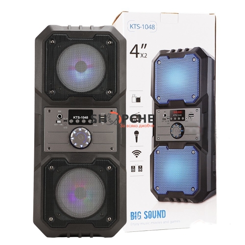 👉 Присъедини се към Viber общносттаBluetooth тонколона KTS-1048 е идеална звукова кутия за всеки, който търси преносим звук с добро качество, който е лесен за пренасяне и лесен за работа. Слушайте качествената си музика, като свържете тонколоната към вашия Notebook, таблет, смартфон, мобилен телефон, компютър, Iphone, Ipad, Smart Tvs и много други устройства чрез вход Bluetooth или Aux.