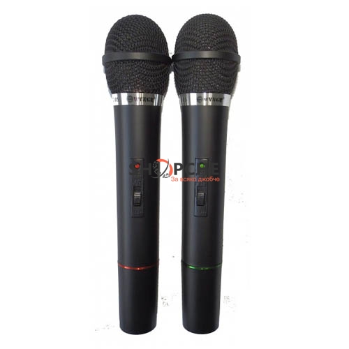 Система за караоке с два безжични микрофона + приемник (с две антени за по-добър обхват). Страхотна придобивка, която може да се използва както за професионални изяви, така и за домашни условия (караоке партита и др.)
