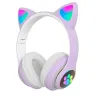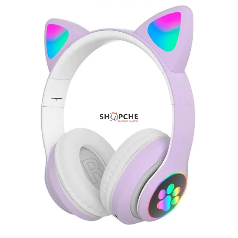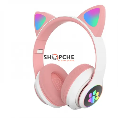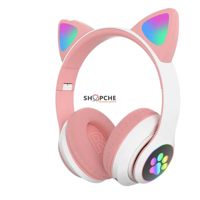 Светещите котешки слушалки CAT са създадени да впечатляват – не само със звук, но и с визия. Дизайнът с котешки уши и цветни LED светлини ги прави любими на деца и момичета, а вградените функции ги превръщат в практичен аксесоар за музика, игри и разговори.