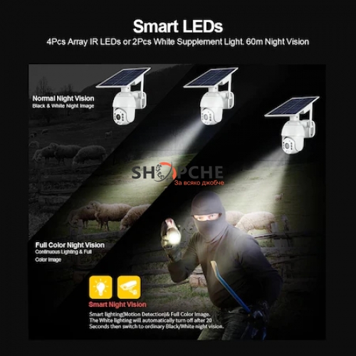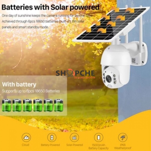 👉 Присъедини се към Viber общносттаKамера с вграден соларен панел и литиево-йонна Li-ion батерия, няма нужда от електричество, кабели или адаптери. С вградената Li-ion батерия, която се зарежда от соларен панел, тази IP камера е изключително лесна за инсталации и употреба.