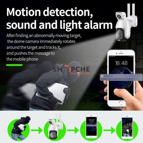 👉 Присъедини се към Viber общносттаНай-Мощната Външна Водоустойчива Камера Wifi Full HD 2.0MP 50 LED 355° автоматично въртяща се с 2 подвижни лещи от ново поколение!