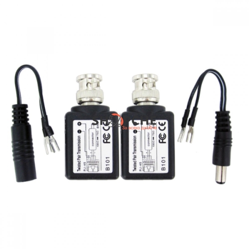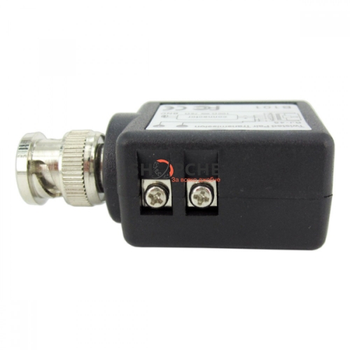 Преход от RG45 към BNC със захранваща букса. През мрежовият кабел , който е 8жилен преминава видеосигнала и захранването.