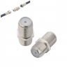 Муфа (преход) за съединяване и удължаване на коаксиален кабел RG 6 (6,8mm), без загуба на сигнал. С резба за навиване към F конектор.