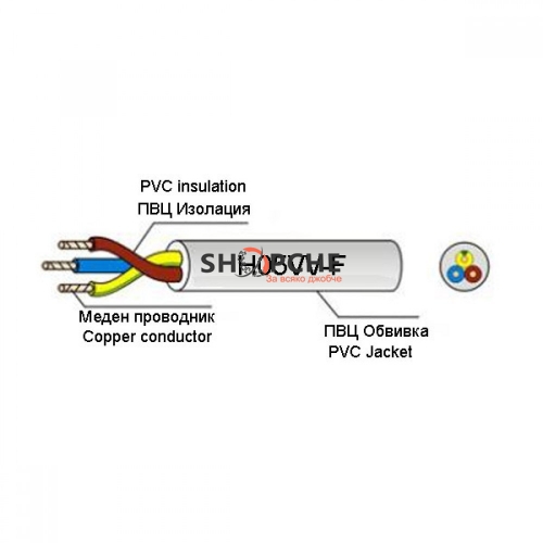 Разновидност на проводника: H05VV-F – кръгъл вариант