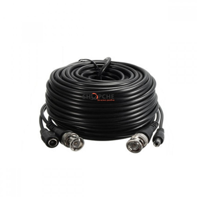 Коаксиален кабел RG58 50 Ohm за охранителна камера с накрайници BNC и захранваща букса