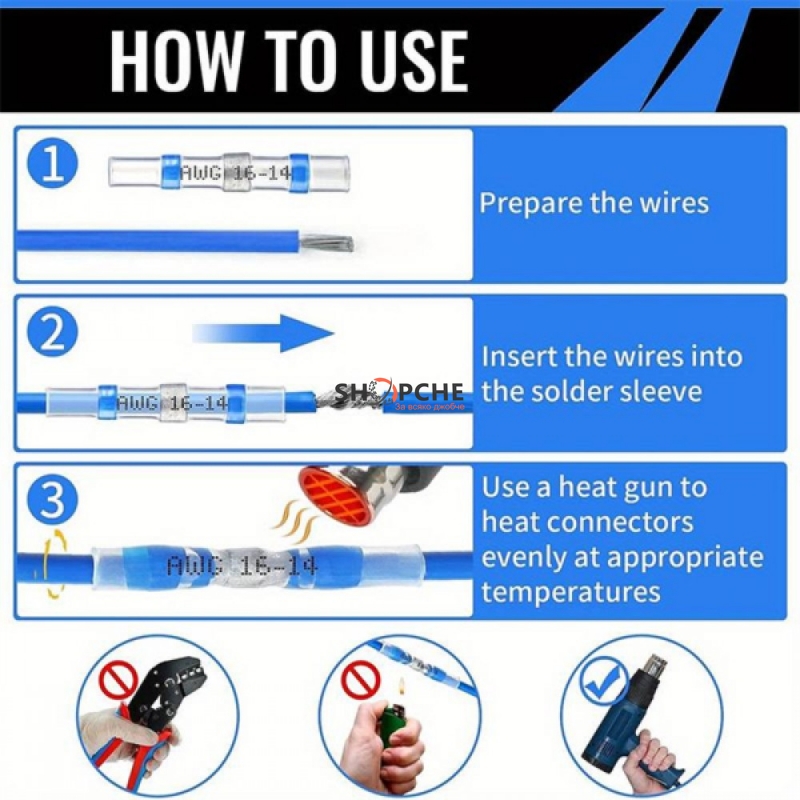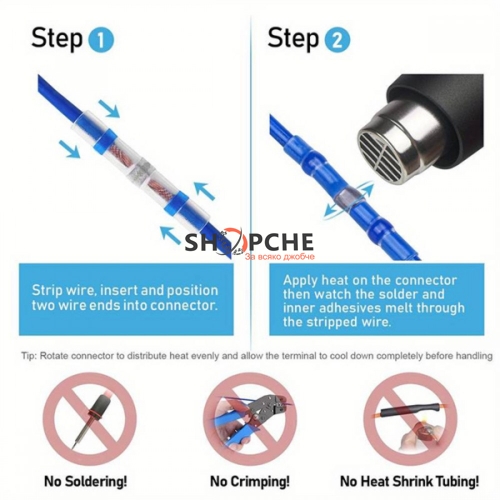 👉 Присъедини се към Viber общносттаВтулката за бързо спояване с термошлайф и калай е специален компонент, който улеснява бързото и сигурно свързване на два кабела заедно.
