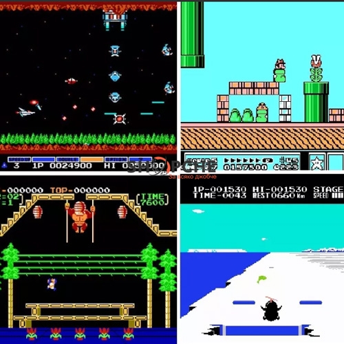 Не е необходимо да сменяте дискети, за да играете игри като Mario (няколко версии), Super Mario Bros. 3, Galaga, Galaxian, Pac Man, Donkey Kong, Donkey Kong 3, Donkey Kong младши, Tetris, Dig Dug, Dig Dug 2, Gradius , World of Warcraft, World of Warcraft, Светът на Warcraft, World of Warcraft, Светът на Warcraft, World of Warcraft, World of Warcraft, World of Warcraft, Втората световна война и много други. класически игри, които отбелязаха една ера.