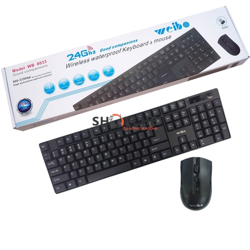 👉 Присъедини се към Viber общносттаПредставяме Ви 2.4Ghz Безжична водоустойчива клавиатура и мишкаWeibo WB-8033