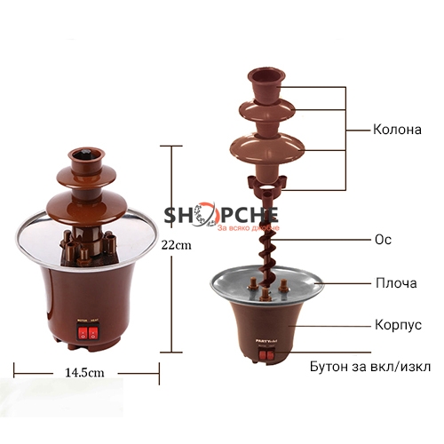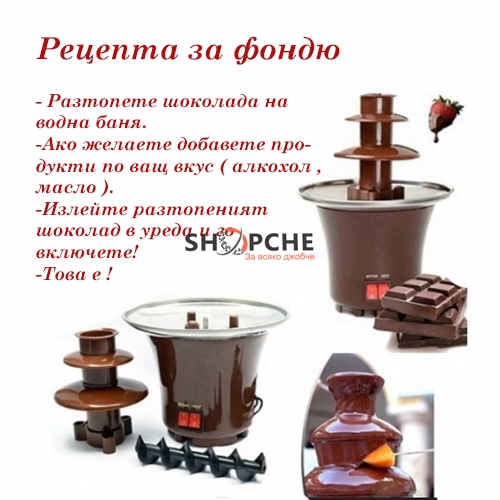 Просто изсипете препоръчителното количество разтопен бял или тъмен шоколад в основата и включете двигателя.