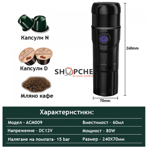 Ако вие сте любител на кафето и обичате да го консумирате свежо и топло навсякъде където сте, то преносимата кафемашина ACM009 е точно за Вас!