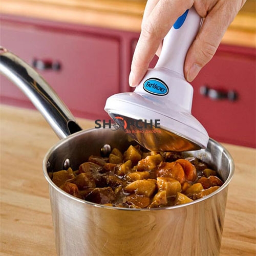 След като сготвите, плъзнете Fat Magnet над повърхността на мазните ястия. Изчакайте мазнината да се втвърди за няколко секунди и ще видите как тя залепва за магнита.