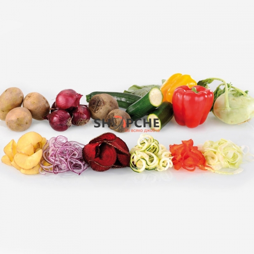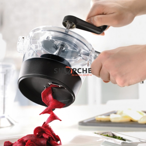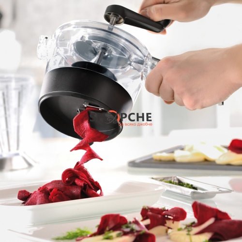 Gefu Spiralfix е уред за рязане на зеленчуци и плодове на спирали.