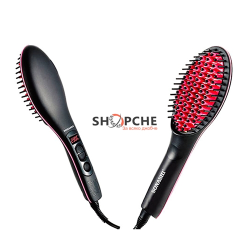Тук е Симпли Стрейт Делукс - новата керамична ел. четка за изправяне на коса, която комбинира силата на преса за коса с нежното разресване на четката за стилно оформена и изправена коса на мига.