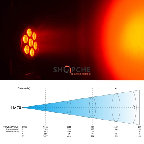 Източник на светлина- 7 * 8W 4-в-1 (RGBW) LED осветление