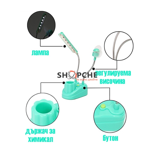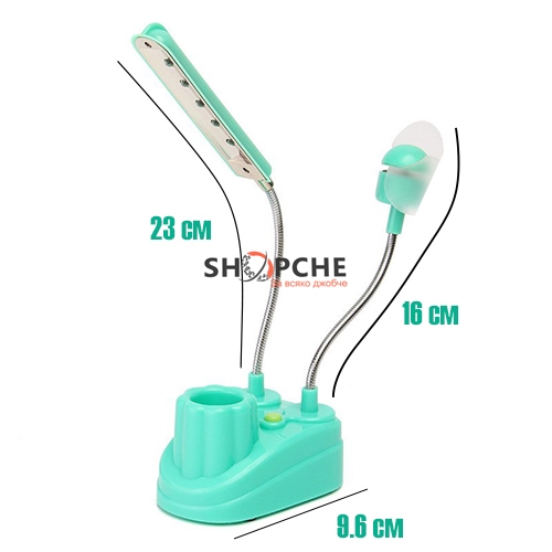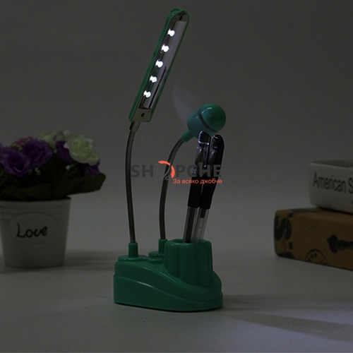 Тя е мултифункционална - лампа, държач за химикалка, USB вентилатор.