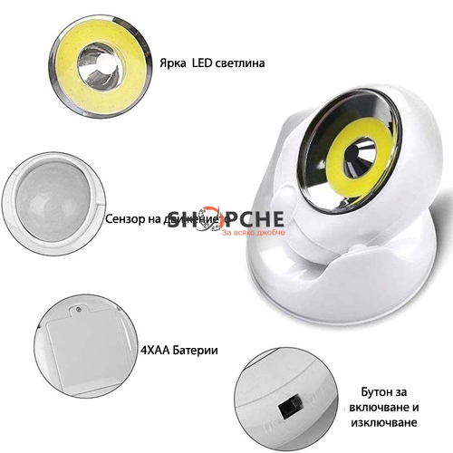 👉 Присъедини се към Viber общносттаПредставяме Ви осветителната система на батерии с датчикк за движение – Atomic Angel Cob Light.