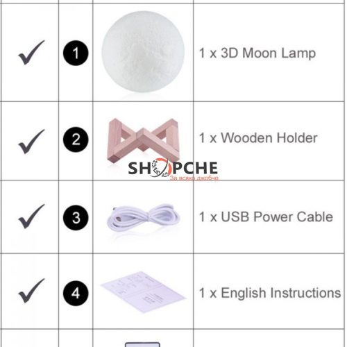 1 х 3D Лунна лампа