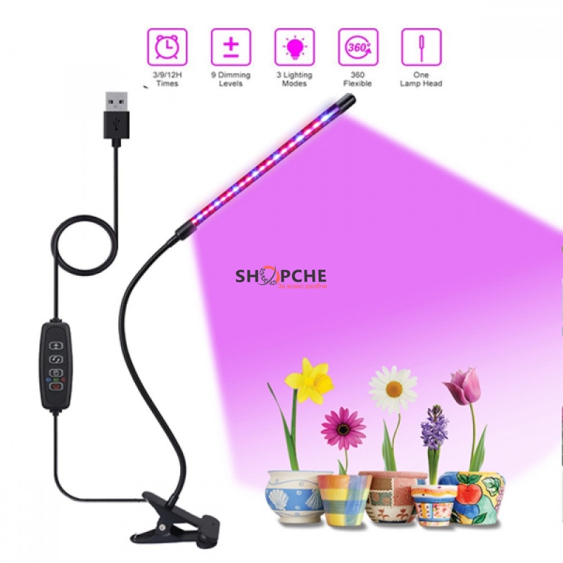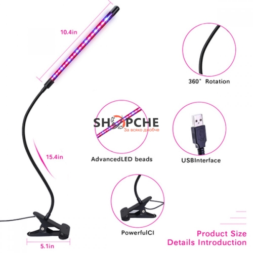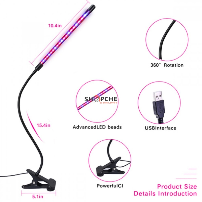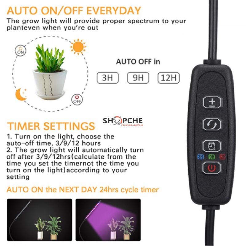 👉 Присъедини се към Viber общносттаПредставяме ви UV LED lamp специално проектиран за стайни растения. Този модел разполага с USB захранване и вграден контролер с таймер, който ви позволява да настроите времето за осветление на 3, 9 или 12 часа в зависимост от нуждите на вашите растения.