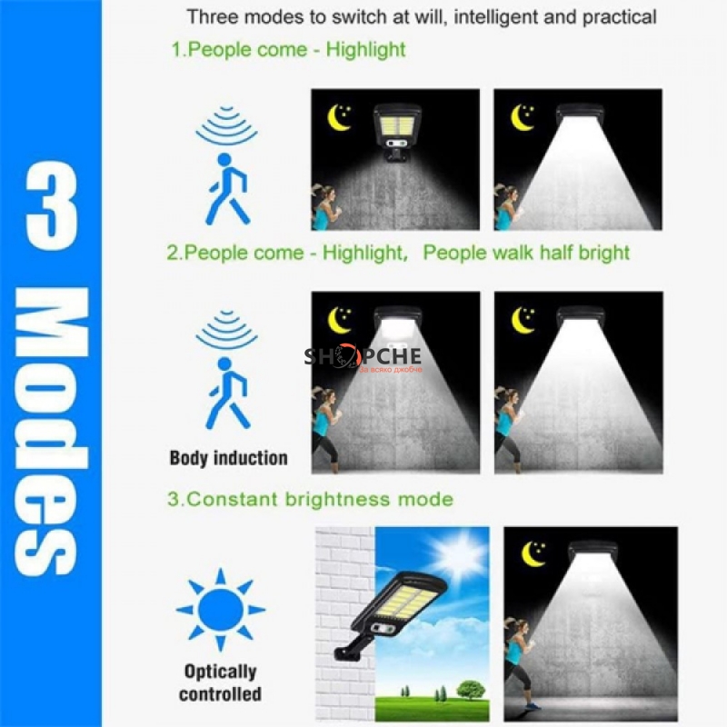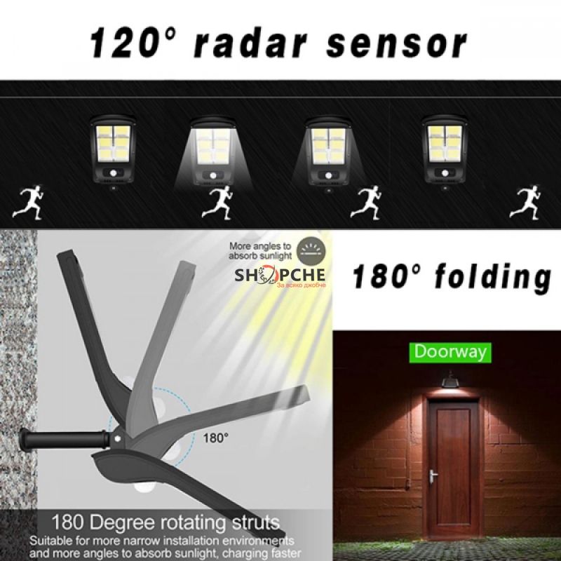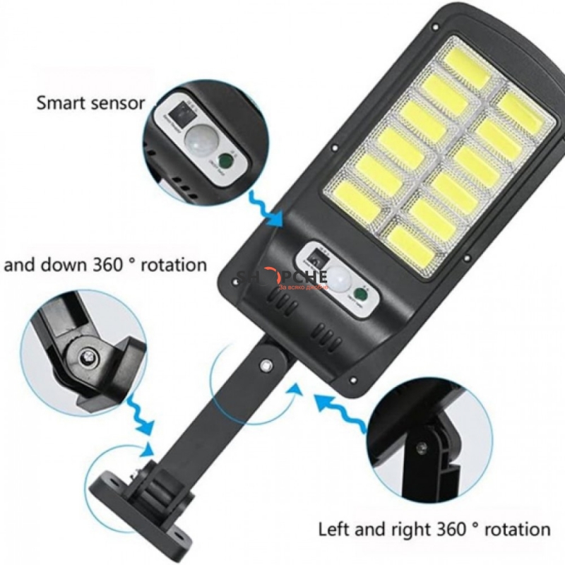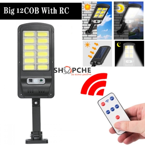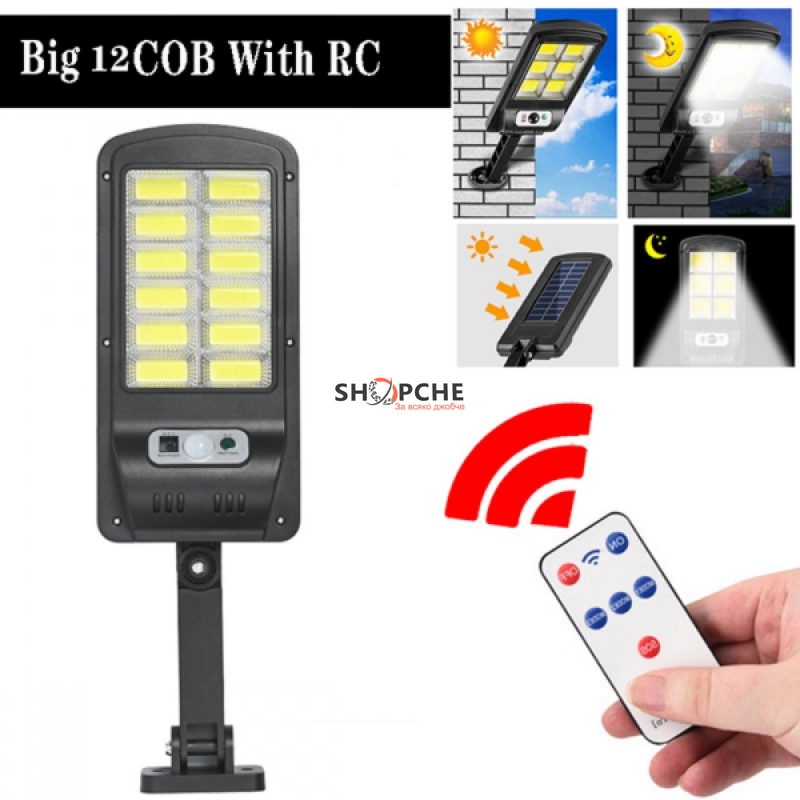 👉 Присъедини се към Viber общносттаLED Соларна улична лампа 12 COB, 3 режима на работа, сензор за движение и дистанционно управление