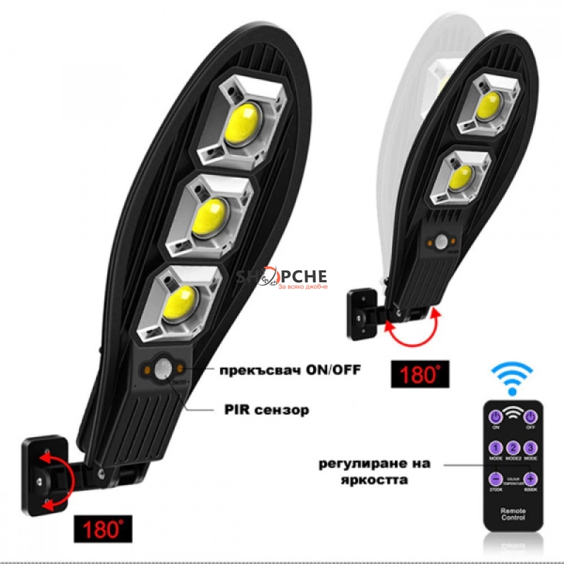 👉 Присъедини се към Viber общносттаКобра LED Соларна улична лампа 3 COB, 3 режима на работа, сензор за движение и дистанционно управлени
